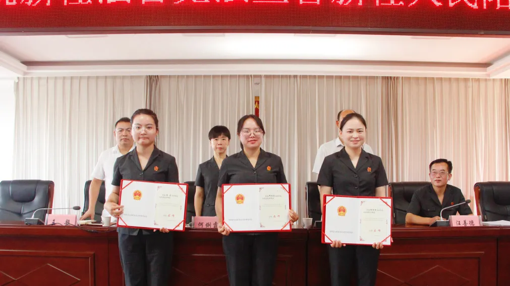 7月18日,崇阳县法院组织新任法官宪法宣誓,新任人民陪审员就职宣誓暨岗前培训。县法院党组书记、院长何俐霞,县人大常委会代工委主任张楚雄,县司法局党组副书记、副局长王超出席,县法院党组成员、政治部主任汪善德主持。